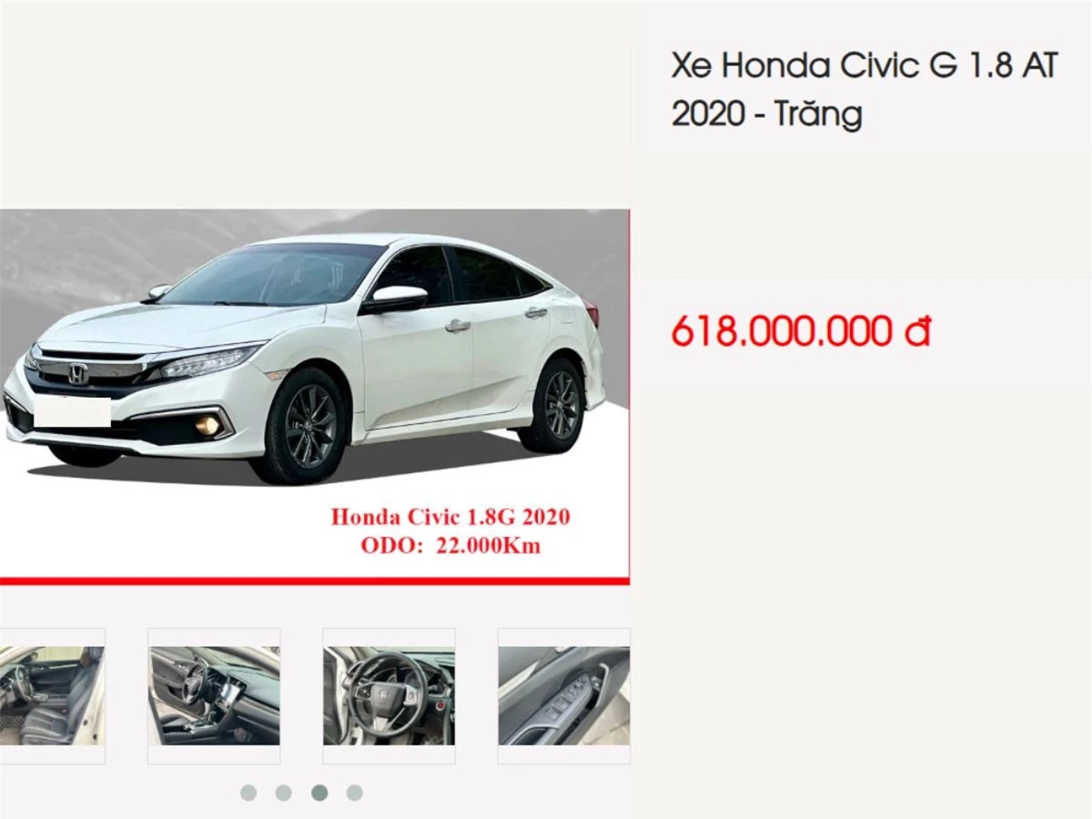 Trên thị trường xe đã qua sử dụng, một chiếc Honda Civic sản xuất năm 2020 đang được rao bán lại với mức giá chỉ 618 triệu đồng.