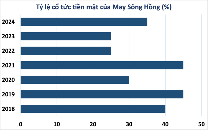 May Sông Hồng là doanh nghiệp có truyền thống trả cổ tức tiền mặt với tỷ lệ cao. Năm 2022 và 2023 cùng tỷ lệ là 25%, năm 2024 là 35%. Mức cổ tức năm 2025 dự kiến 30 – 45% trên vốn điều lệ.