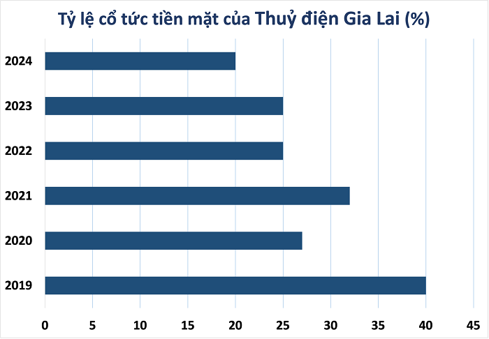 Theo kế hoạch, cổ tức 2025 của Thuỷ điện Gia Lai dao động 15-25%. Như vậy tỷ lệ cổ tức còn lại mà công ty cần chi trả tối đa là 5%. Năm 2024, công chi trả cổ tức ở mức 20%, thấp hơn tỷ lệ 25% của năm 2023.