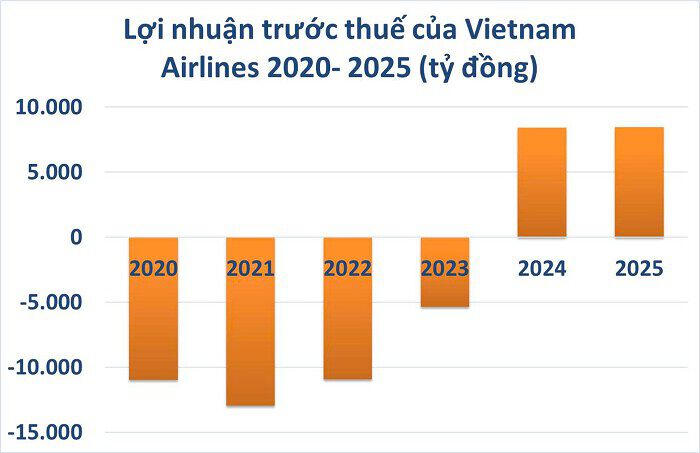 Trước đó, Vietnam Airlines đặt kế hoạch năm 2025 với mục tiêu doanh thu hợp nhất 116.715 tỷ đồng và lợi nhuận sau thuế 5.554 tỷ đồng.