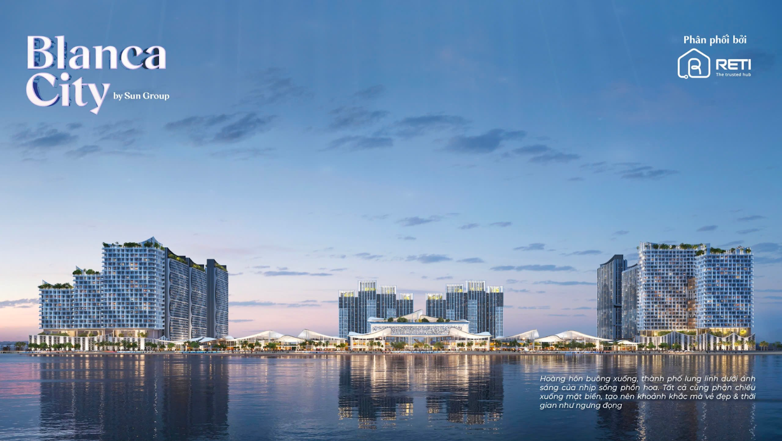 Với bề dày kinh nghiệm Đồng hành cùng Sun Group trong nhiều dự án lớn, nổi bật như: Sun Ponte Residence, Sun Symphony Residence, The Hillside, Sun Costa Residence…, RETI tiếp tục được lựa chọn là đại lý F1 chính thức phân phối dự án Blanca City . Đây là cột mốc quan trọng,một lần nữa khẳng định uy tín của RETI trên thị trường bất động sản cao cấp, đồng thời mang đến cho khách hàng những cơ hội sở hữu các sản phẩm nghỉ dưỡng giá trị nhất.
