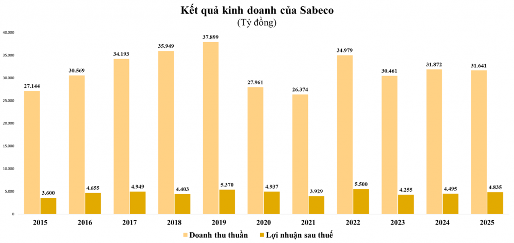 Năm 2025, Sabeco đặt mục tiêu doanh thu thuần 31.641 tỷ đồng, giảm nhẹ 1% so với năm 2024 song mục tiêu lợi nhuận sau thuế lại tăng 8%, lên 4.835 tỷ đồng.