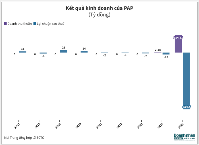 So với kế hoạch đề ra cho năm 2025, Cảng Phước An đặt mục tiêu đạt khoảng 150 tỷ đồng doanh thu và lỗ sau thuế 449 tỷ đồng. Kết thúc năm tài chính, doanh nghiệp đã hoàn thành chỉ tiêu doanh thu, song mức lỗ thực tế lại cao hơn kế hoạch hơn 150 tỷ đồng.Đây là năm thứ 5 liên tiếp PAP báo lỗ và cũng là mức lỗ cao nhất kể từ khi thành lập. Lỗ lũy kế theo đó đã vượt 535 tỷ đồng.