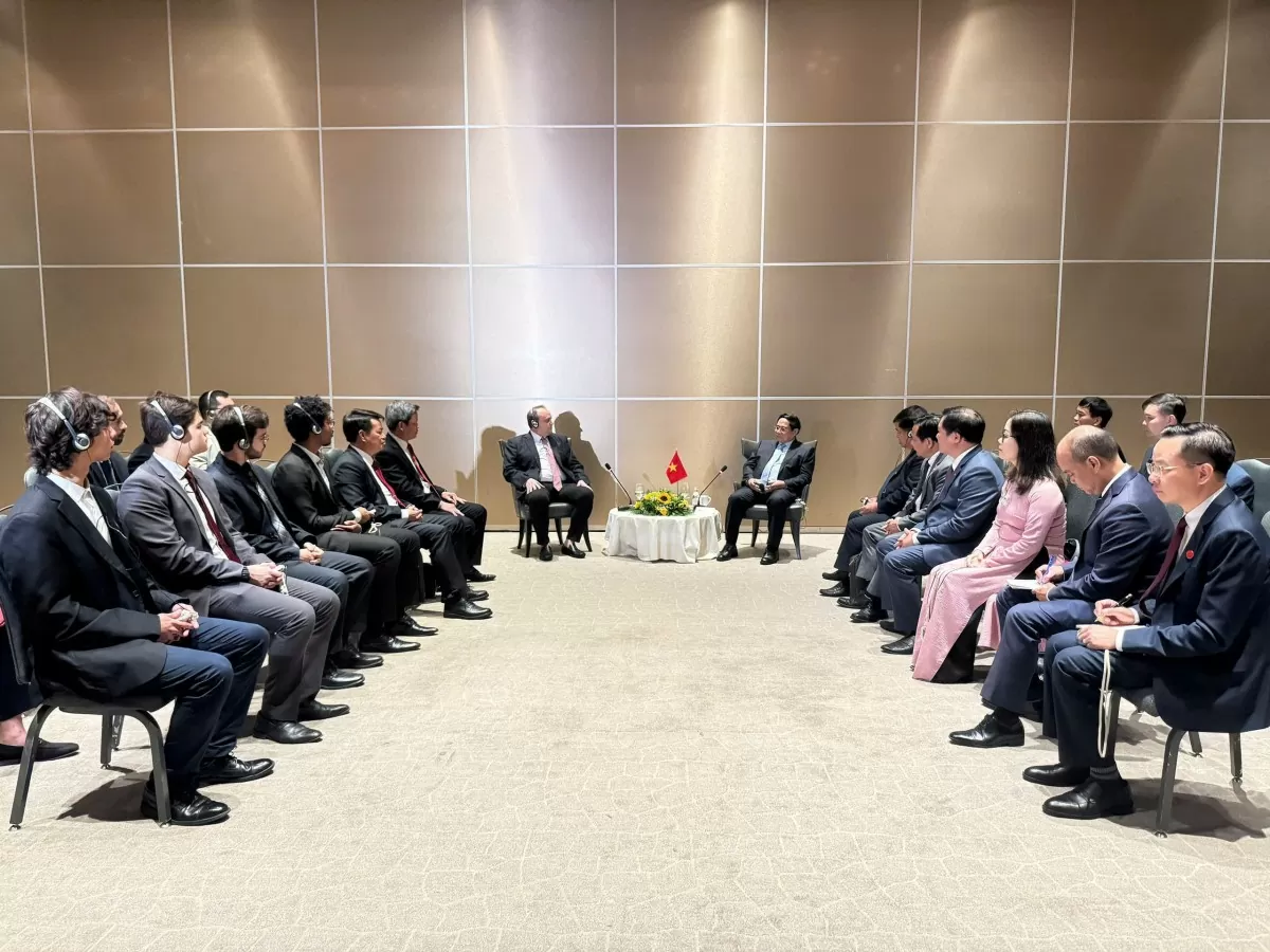| Với sự chứng kiến của Thủ tướng Phạm Minh Chính, Tập đoàn Hóa chất Việt Nam và Tập đoàn OCEANSIDE ONE đã đạt được những thỏa thuận để đi đến ký kết MOU. Ảnh VNC |