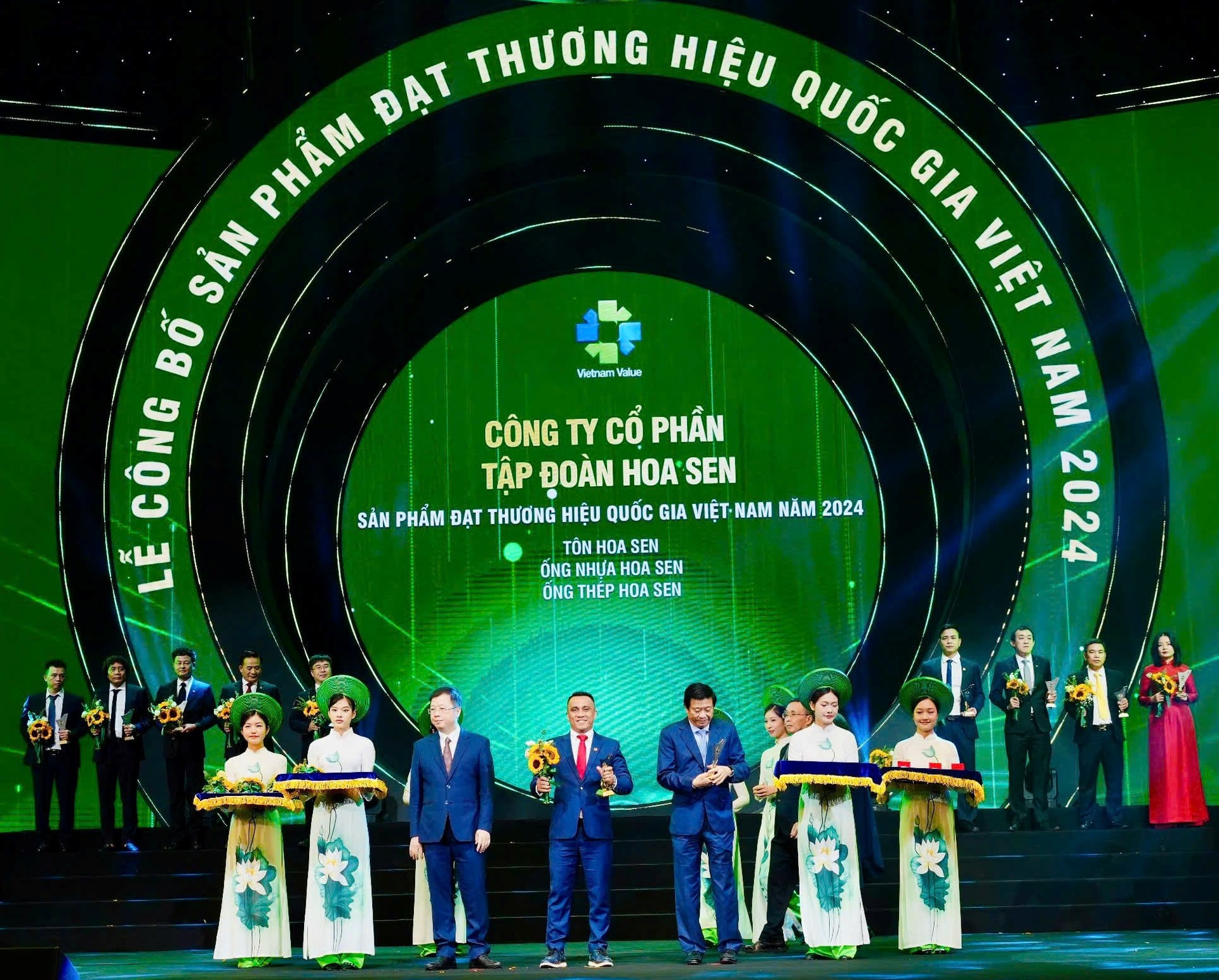 Ngày 4/11/2024, tại Lễ công bố sản phẩm đạt Thương hiệu Quốc gia Việt Nam năm 2024, Tập đoàn Hoa Sen đã vinh dự được Thủ tướng Chính phủ trao biểu trưng Thương hiệu Quốc gia Việt Nam cho cả 3 nhóm sản phẩm Tôn Hoa Sen, Ống Thép Hoa Sen, Ống Nhựa Hoa Sen.