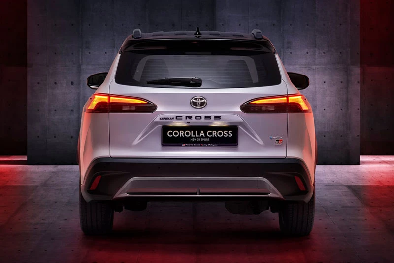 Ở phần dưới, thiết kế tấm chắn gầm đã được làm mới, loại bỏ cấu trúc ba thanh trước đây để chuyển sang kiểu dáng đơn giản hơn với các khe thông gió thể thao. Phía sau xe, biểu tượng Corolla Cross nay được sơn màu đen thay cho chi tiết mạ crôm, đồng điệu với phong cách GR Sport. UMW Toyota Motor (UMWT) cũng xác nhận mái xe sơn đen hiện là trang bị tiêu chuẩn cho tất cả các tùy chọn màu ngoại thất, bao gồm trắng ngọc trai bạch kim, xanh ngọc đậm và đỏ ánh kim giúp tổng thể xe trông thể thao và cao cấp hơn.