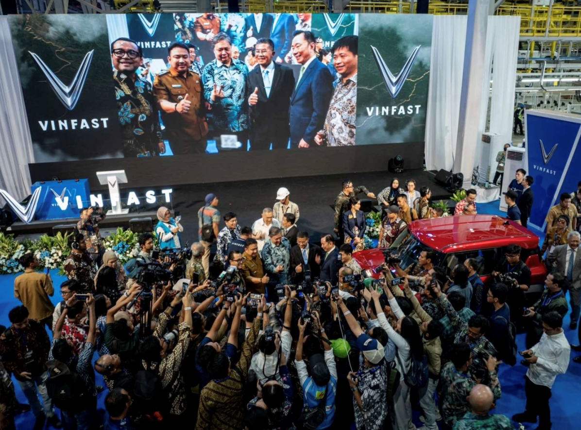 Sau 17 tháng thi công, VinFast của tỷ phú Phạm Nhật Vượng chính thức đưa vào vận hành hà máy ô tô điện tại Subang (Tây Java), trở thành nhà máy đầu tiên của hãng tại Indonesia và Đông Nam Á ngoài Việt Nam.