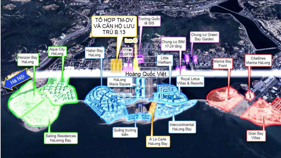 Theo quy hoạch, dự án có vị trí tại lô đất có ký hiệu HHO-B1.3, đa giác số 4, Trung tâm du lịch dịch vụ và vui chơi giải trí (Phân khu 6), phường Hùng Thắng, thành phố Hạ Long. Phía Bắc của dự án giáp đường quy hoạch và lô đất có ký hiệu HHO-B1.2; phía Đông giáp đường quy hoạch và lô đất có ký hiệu HHO-B1.4; phía Tây giáp đường quy hoạch và lô đất có ký hiệu HHO-B1.7 và phía Nam giáp đường Hoàng Quốc Việt.