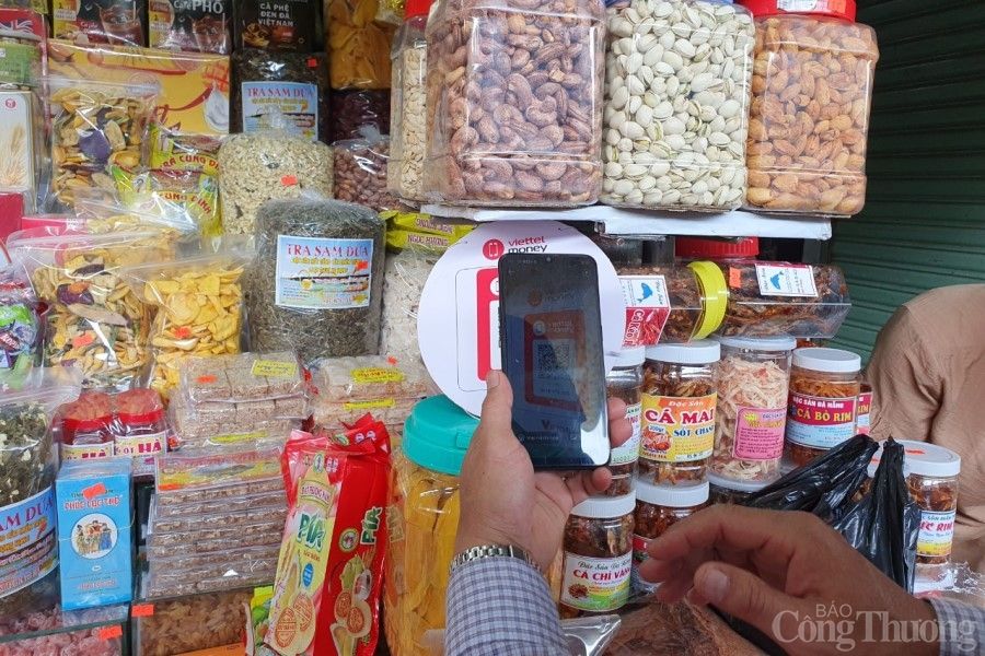 Thích ứng với chuyển đổi số trong CMCN 4.0, các tạp hóa, chợ truyền thống tại miền Trung - Tây Nguyên đã hình thành thói quen thanh toán không tiền mặt.