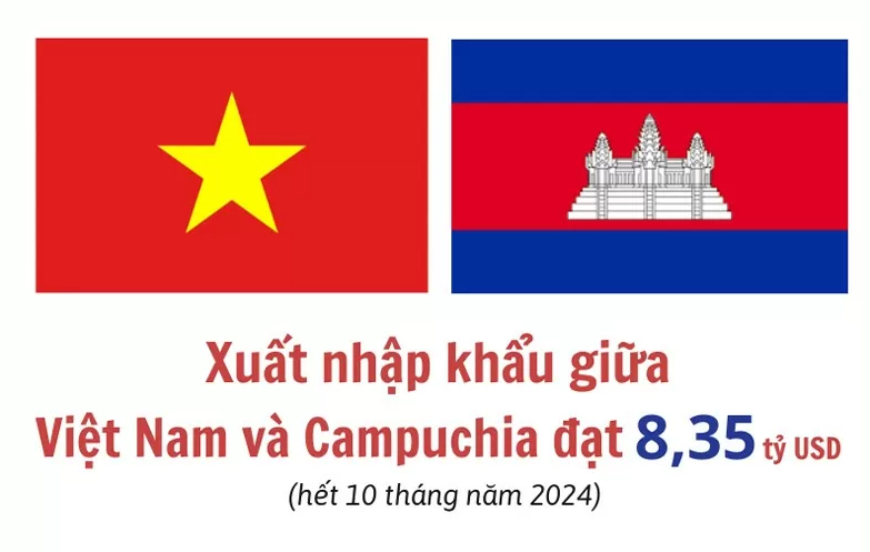 Theo Tổng cục Hải quan, hết tháng 10 năm 2024 tổng kim ngạch xuất nhập khẩu giữa Việt Nam và Campuchia đạt 8,35 tỷ USD.