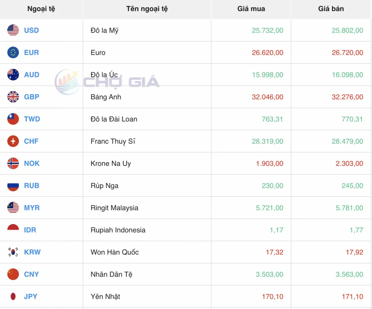 Dollar Mỹ | USD | 25,375 | 25,375 | 25,735 |